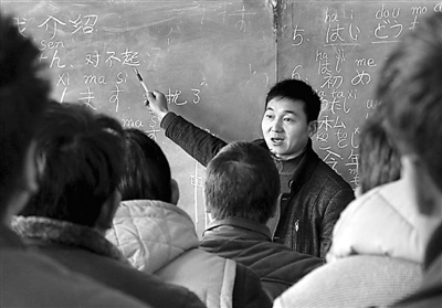 上图:2月19日,在一家国际劳务公司的培训班上,一位教师在给学员上日语课。