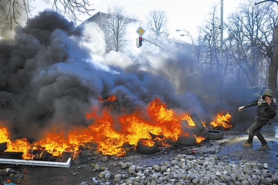 2月18日,在乌克兰首都基辅,反对派示威者与警方在市中心发生冲突。