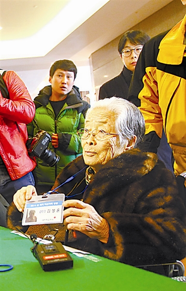 19日,96岁高龄的金成润(韩文音译)老人在位于韩国江原道束草的集合处办理手续。金成润是第一轮朝韩离散家属团聚活动中年纪最大的。当日,83名参加韩朝离散家属团聚活动的韩方离散家属和61名陪同者在江原道束草集合办理手续。他们将于2月20日从束草出发前往朝鲜金刚山参加离散家属团聚活动。新华社记者 姚琪琳 摄