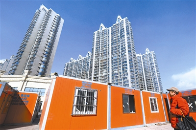 2月19日,山西太原,一座集装箱租赁房屋矗立在改造工地上。
