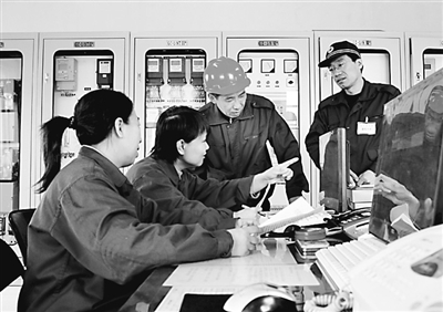 吉林供电段开办“技术讲堂”,把课堂设到班组,把技术送到一线,引导职工学技术、练硬功,不断提高职业技能。图为该段工程技术人员与配电值班员进行技术交流。伏成刚 摄