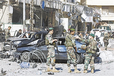 2月19日,士兵在黎巴嫩首都贝鲁特的爆炸现场附近执勤。