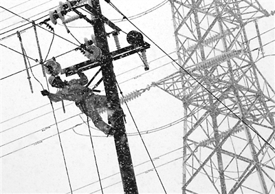 面对近日多次出现的雨雪天气,国网浙江诸暨市供电公司加强输变电运行巡视,并对重要线路设备开展特巡、特护和带电监测,确保电网保持全接线、全保护的安全运行。图为员工正对10千伏孝东线坑口支线62号杆特巡。郭斌 章奇斌 摄