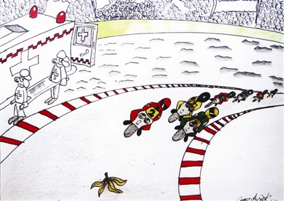 摩托赛道上出现隐患,医务人员只需举手之劳即可排除,可是他们却要等候悲剧发生,真不厚道!坎那·艾鲁克(土耳其)