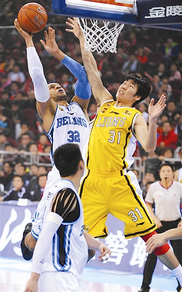 莫里斯(左)成为北京队此役获胜的头号功臣。 本报记者 许之丰 摄