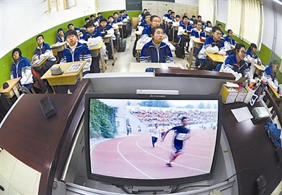 2月21日,北京市回民学校的学生不得不在室内上体育课。