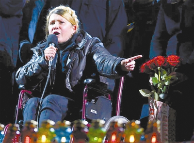 22日晚现身基辅的季莫申科神情憔悴地坐在轮椅上,她向支持者表示感谢,并呼吁示威者不要离开独立广场,她说,正是依靠广场上的示威者,这个国家的一切才得以改变。季莫申科的被释可以说是乌克兰反对派的又一个“胜利”。