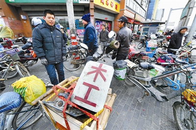 务工人员在宁夏回族自治区银川市南门劳务市场内等待雇主(2013年2月24日摄)。