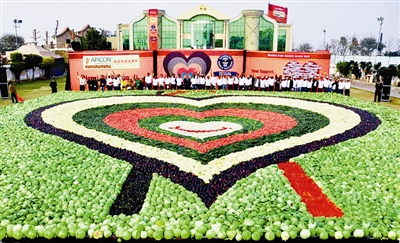 近日在印度卢迪亚纳,上千志愿者用蔬菜拼成巨型马赛克,打破了由日本人保持的世界最大蔬菜马赛克的吉尼斯世界纪录。谢涛 供图