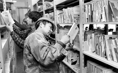 辽宁省义县图书馆近日创办农民工阅览室。阅览室全天候开放,农民工随时可以享受免费文化大餐。图为2月24日,农民工在阅览新书。 李铁成 摄