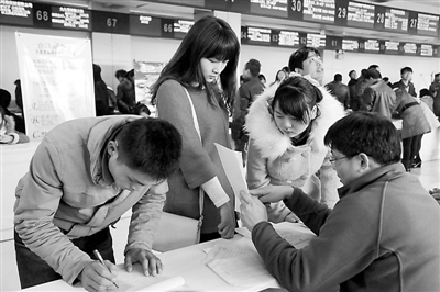 为方便女士求职,活动主办方专门将求职大厅设为女子专场,提供管理、销售、客服、会计等适合女性的招聘职位,并优先让女士入场。一些招聘单位打出“女士优先”的醒目标语,欢迎女性求职者。不过,由于当天的日常招聘会也同时进行,女子专场招聘会也吸引了不少男士进场。耿国庆 摄