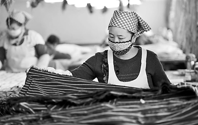 邹平县大果村的李岩在本村的阳光色织有限公司内验布,她春节后回本村公司上班。