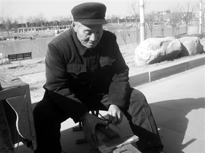 当他把磨好的剪子与菜刀交给主人时,脸上每一条皱纹里都蓄满笑意。毕大爷说,生意好的时候一天能挣四五十元钱,差的时候就几元钱。”(刘燕 晓剑)