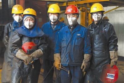 2月25日,孙斌斌(图左二)在向年轻的焊工讲解技术要点。