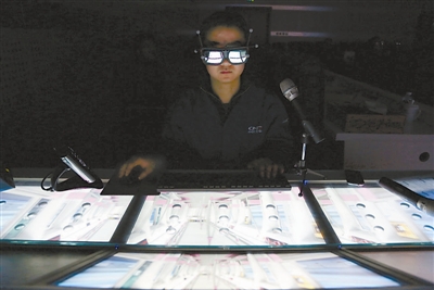 2月18日,工作人员在演示高铁3D效果图。