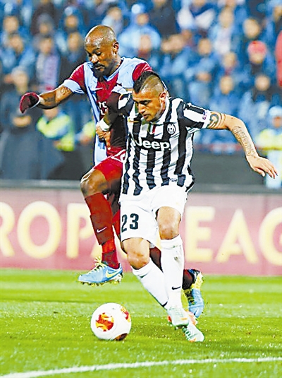 北京时间2月28日凌晨,2013-14赛季欧联杯1/16决赛次回合战罢。被球迷戏称为“斑马军团”的意甲豪门尤文图斯(图下为尤文前锋比达尔)客场2比0击败土耳其特拉布宗体育,顺利晋级16强。(资料图)