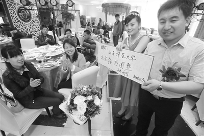 济南历山路与北园大街交叉口,酒店婚宴现场,一对新人将收到的礼金十万元礼金捐给山东师范大学。据了解,新郎为倡导节能环保,将十万元礼金全部转化成节能灯,为山东师范大学无偿安装节能灯,打造节能型校园。依旧/CFP