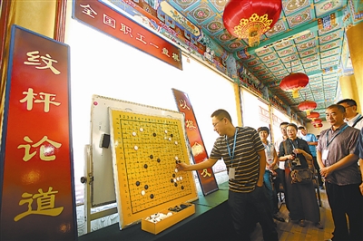 出席开幕式的领导和各参赛队代表每人一子,共同完成“全国职工一盘旗”。