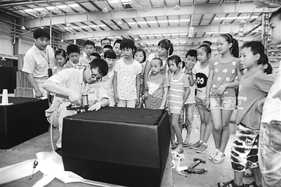 7月15日,“小候鸟”们在参观父母工作的地方,了解父母工作的环境。