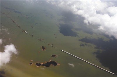 从高空俯瞰在建的港珠澳大桥,犹如正在串接的项链,大桥建成后,将进一步加强港珠澳三地的融合、交流。