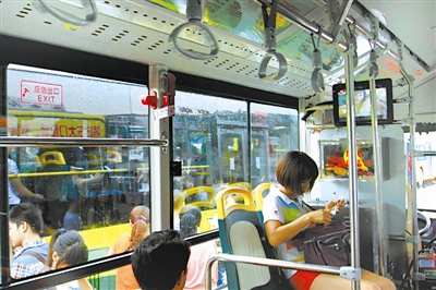 近日,广州市首批70辆安装了玻璃自动爆破装置的公交车已经有部分投入运营。在遇到火灾、车祸或落水等突发状况时,驾驶安装有玻璃自动爆破装置公交车的司机可按下位于操作板的按钮,使逃生车窗玻璃迅速安全爆破,爆破时间仅需0.1~0.3秒,为车上乘客赢得宝贵的逃生时间。 新华社发 (沈敦文 摄)