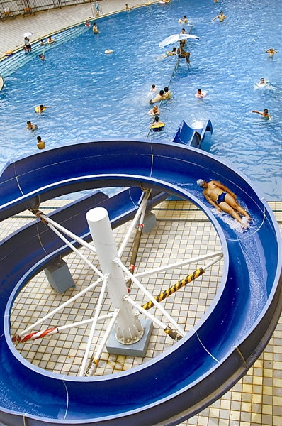 在“激流勇进”的滑道中飞驰而下,享受按摩池的“淋浴水疗”……北京青年湖公园水上世界开业来,再次带来了全新的夏日欢乐和动感体验。连日来,北京持续高温,众多游客竞相前往戏水玩耍。青年湖公园水上世界作为北京市区三环内唯一一家集戏水、游乐、健身于一体的大型户外游泳场,水域面积达3000平方米。本报记者 吴凡 摄