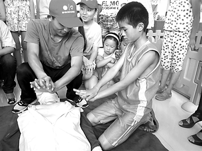 7月17日上午,淮北供电公司“燕飞志愿者服务队”队员来到淮北市相山区渠沟镇郭王村,开展了以“关注留守儿童用电安全”为主题的活动,向放暑假的郭王村留守儿童宣传安全用电知识。志愿者亲自为孩子们进行了心肺复苏法的急救教学示范,耐心地对孩子们讲解心肺复苏法的技能和注意事项。(陈杰)