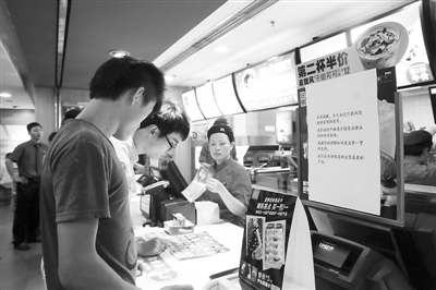 据上海一家麦当劳内部人士透露,受“过期肉风波”影响,21日上海市所有麦当劳都不供应肉食,只卖饮料冰淇淋和薯条。上海肯德基餐厅中,两款汉堡正常销售,店员称“没有接到下架通知”。