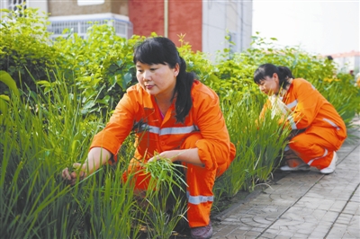 姜明娟带领班组同事在除草