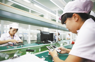 7月30日,工人在四川省华蓥市一家手机生产企业工作。