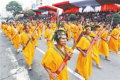 当地时间2014年7月29日,秘鲁利马,秘鲁举行大阅兵庆祝独立193周年。图为秘鲁万卡约自卫武装参加阅兵式。东方IC 供图