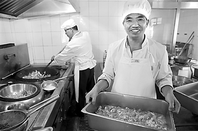 近日,石家庄高新技术产业开发区供水排水公司炊事班长、复转军人张洪仿在展示厨艺。