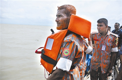 8月4日,在孟加拉国首都达卡附近的帕德玛河上,救援人员展开搜救行动。