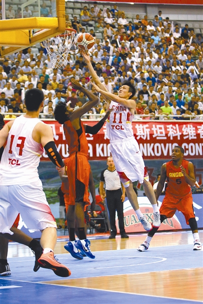 8月4日,在2014年斯坦科维奇杯洲际篮球赛季军争夺战中,中国男篮以74比58战胜安哥拉,获得季军。图为周鹏在比赛中上篮瞬间。