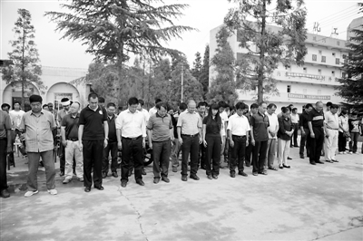 公司同事们在灵堂前向逝者梁龙洲默哀。穆樑 摄