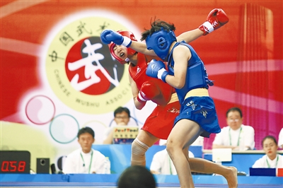 图为散打比赛场面。本报记者 郎成 摄