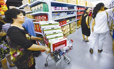 8月12日,市民在位于上海外高桥的进口商品直销中心内购物。