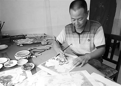 图为8月13日,胡朝民在木贴片上着色。新华社记者 李晓果 摄