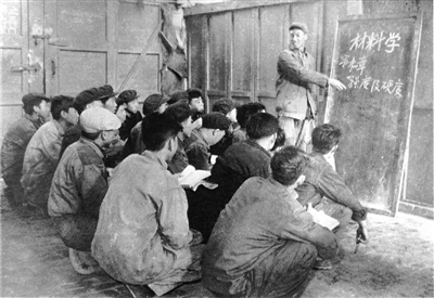 建厂初期职工因陋就简在库房学习技术