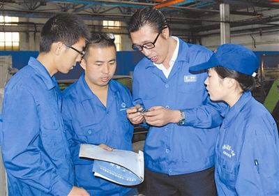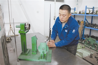 国家级技能大师 、 钳工张学海正在进行产品检测