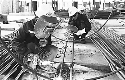 由中铁四局成贵铁路项目经理部四分部承建的成贵铁路1标五通桥岷江特大桥横跨岷江、乐宜高速和多条省级公路工程正在紧张进行中。图为该经理部员工在进行钢筋笼焊接作业。 韦黎明 张君 摄
