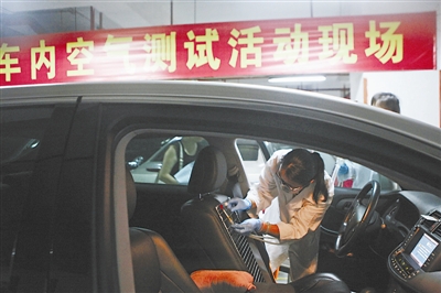 目前,深圳有意制定地方性强制标准,规定生产厂家、汽车销售方以合同的方式,承诺车内空气质量是合格的。图为8月17日,在深圳工商物价大厦地下停车场,深圳市消费者委员会正在对市民的汽车进行车内空气测试。