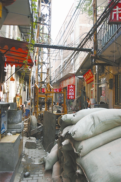 围着村子走了一圈,记者发现,水泥砌成的井口、轰鸣的抽水泵和楼顶的水箱几乎成了建筑物的标配。几位正在路旁清理建筑垃圾的社区居民说,“这是待拆区,没人管。区政府、市政府都来过了,可就是不来水”。