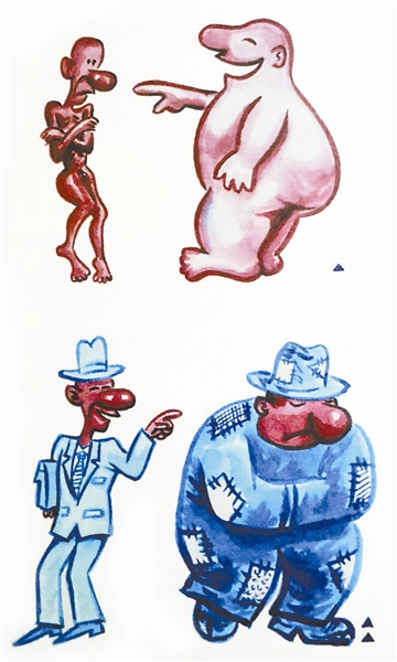 《人不可貌相》除了阐释一个世间公认的一个观念外,还揭示了一个不易被察觉的问题。仔细阅读画面,我们会发现,两个环境下,强势者都在嘲笑弱势者。这样的笑,从创作角度增加了喜剧效果;从阅读角度,又引发了一个社会问题,那就是宽容与理解。