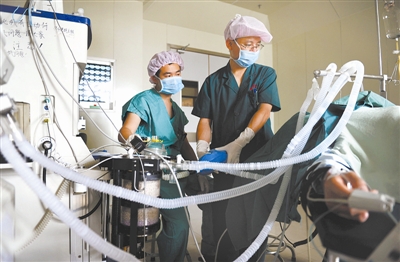新疆职业病医院的肺灌洗专用手术间内,医护人员在给一位尘肺病患者进行肺灌洗手术。马元/CFP