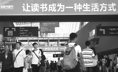 8月17日,广东省广州市,一年一度南粤文化盛宴——2014南国书香节暨羊城书展举行。此次活动以“让读书成为一种生活方式”为年度口号,共有羊城书展、少儿、港台及海外、民营、数字出版动漫及文具等五大版块,展场面积5万平方米,共设展销和专区超过42个。今年的分会场除保留珠海、惠州、江门、阳江外,还新增加了中山和东莞分会场,分会场总面积达到9.3万平方米。 CFP 供图