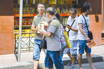 8月25日,广州文昌路,黄牛党向路人兜售月饼票。