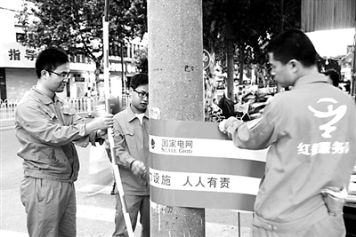 日前,来自嘉兴供电公司的红色义工们,提着喷水壶、小铲刀等工具来到嘉兴市中心,义务去除主干道两旁的电杆、配电箱等电力设备上的“牛皮癣”,为嘉兴文明城市建设助力。