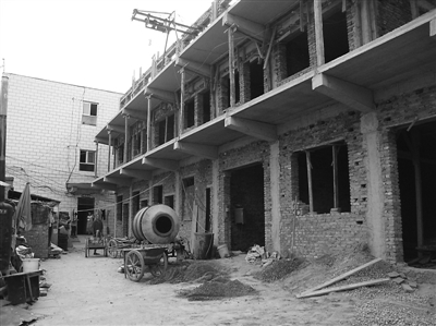 出租房已是村民的主要经济来源,在城中村,常看到正在施工的建设工地。杨召奎/ 摄