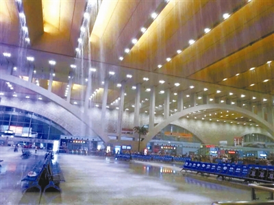 8月28日晚,一场强降雨让启用不足两年的石家庄新客站严重漏水如水帘洞一般。石家庄新客站于2012年12月21日启用,这已是其第二次遭遇“水问题”了。